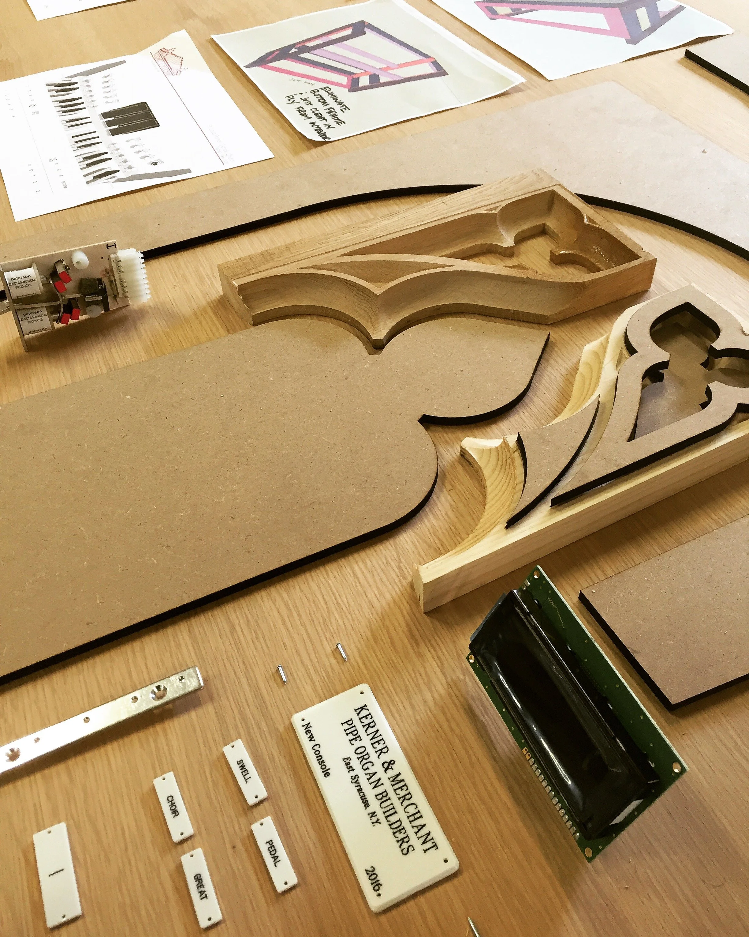 Located at St. Louis Church in Buffalo, NY. The Historic Kimball Organ was built in 1903 by the W.W.Kimball Company of Chicago, IL. Originally containing 30 stops with 33 ranks of pipes. As of October 1999, the organ has 2,600 pipes distributed over 44 stops (49 ranks). In 1952 a new console was installed and had become quite unreliable. Our team was approached to design and build a new console for this beautiful instrument back in 2017. Our goals were to reflect the architectural components in this wonderful space and visually tie both the organ case and the console together. Lacking with the previous console was a visual connection between the Organ and the Console. The two components did not talk with one another creating a broken relationship between the organist and the music. Our design tackles those issues creating a better experience to play, inspire, and harness creativity.